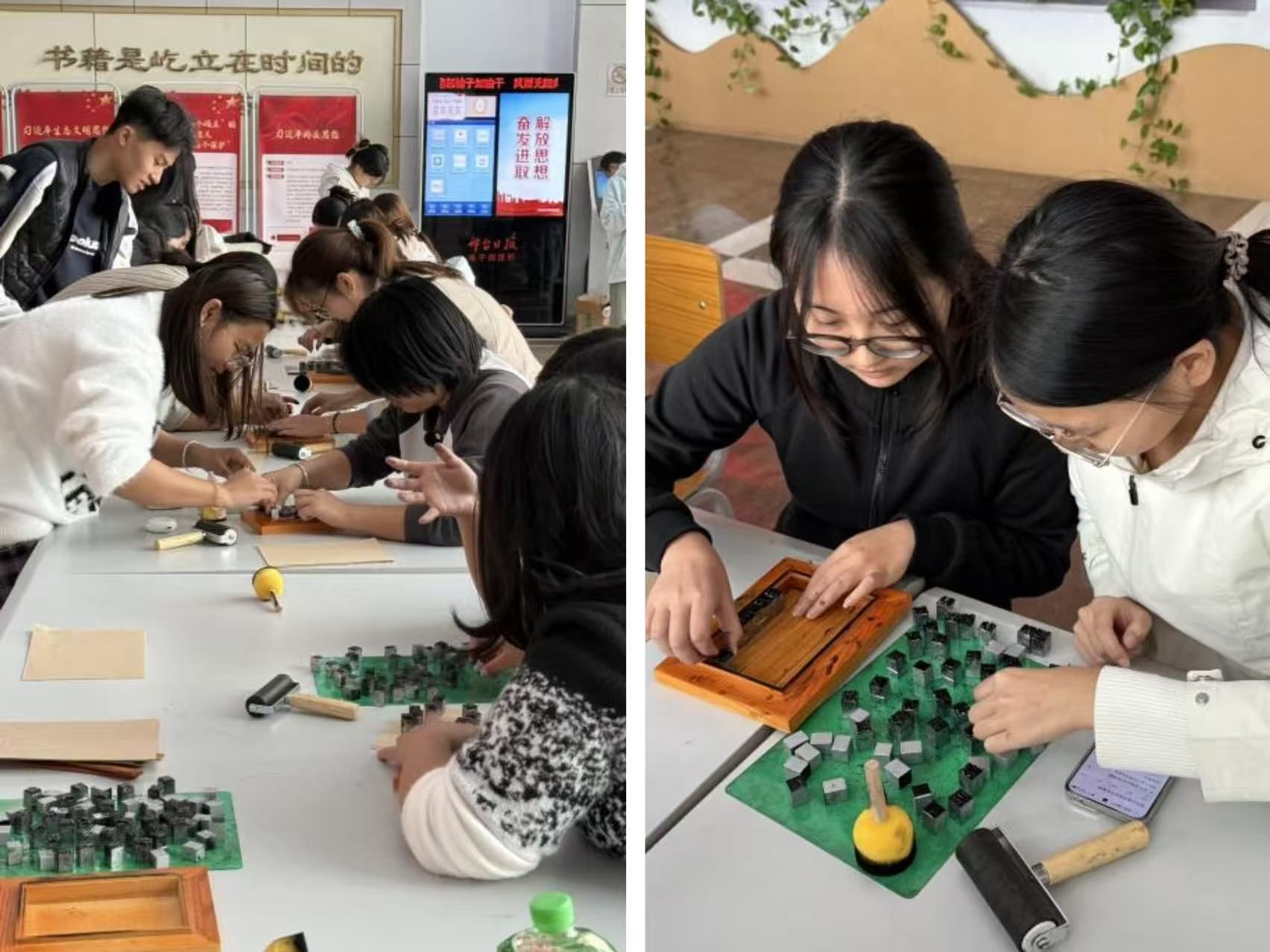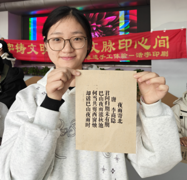 近日,校图书馆联合畅享之星平台在图书馆二楼大厅举办了以“方寸铅字铸文明 千年文脉印心间”为主题的活字印刷非遗手工体验活动,活动吸引了40余名学生积极参与。
