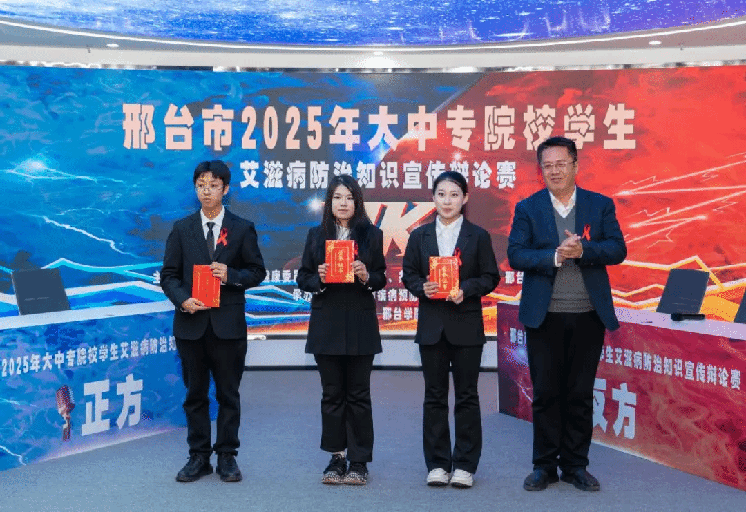 近日,由市卫健委、市教育局、共青团市委、市计生协联合主办的邢台市2025年大中专院校艾滋病防治知识宣传辩论赛总决赛在邢台学院圆满落幕,我校2024级影像本科班谢子瑶、2025级康复治疗学本科3班赵士雄、2024级药学本科2班于欢欢组成的代表队荣获一等奖。比赛现场,我校代表队围绕“艾滋病的宣传教育应该侧重危害警示还是社会关怀”、“大学校园应不应该推广安全套”等辩题与其他参赛队展开激烈交锋,三位辩手沉着冷静、思维敏捷,在立论环节立足医学专业知识精准破题,...
